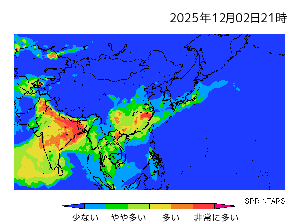 | 九州南部 | 中 | 中 | 少 | 中 | 中 | 少 | 少 | |