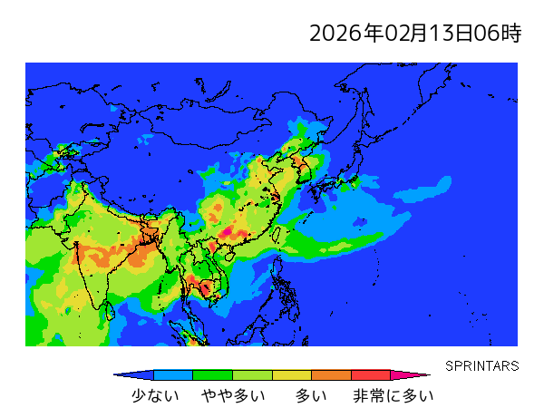 | 九州北部 | 多 | 中 | 少 | 少 | 少 | 中 | 中 | |