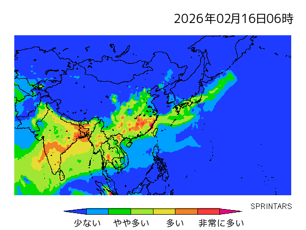 | 九州南部 | 中 | 中 | 中 | 少 | 少 | 中 | 多 |