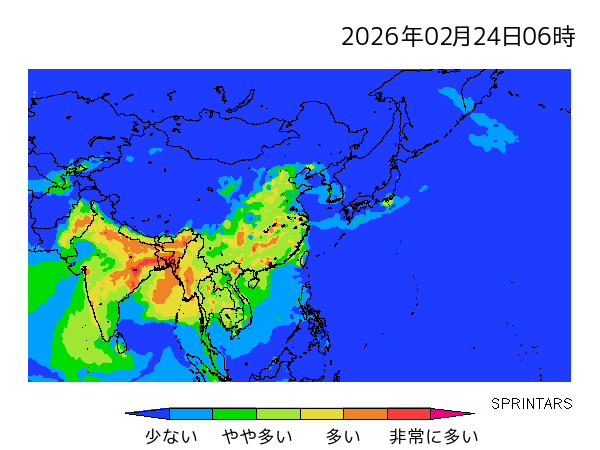| 九州北部 | 少 | 中 | 中 | 多 | 多 | 少 | 中 |