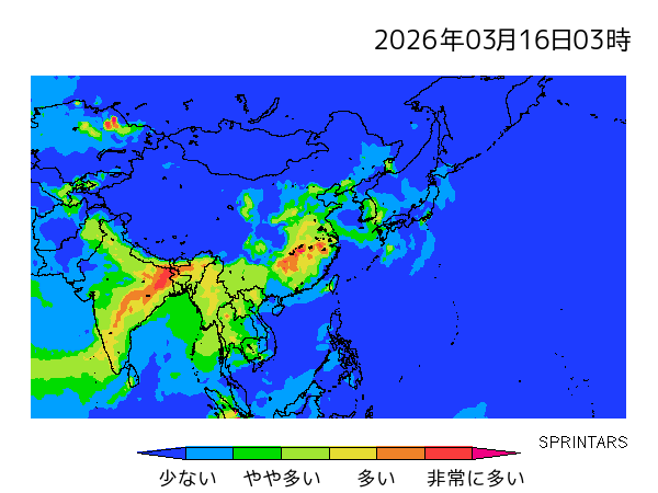 | 九州北部 | 少 | 中 | 中 | 多 | 中 | 中 | 中 | |