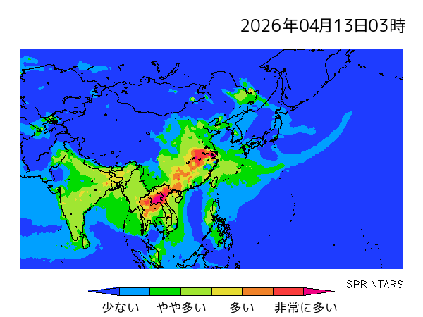 | 九州北部 | 少 | 中 | 中 | 多 | 少 | 少 | 中 |